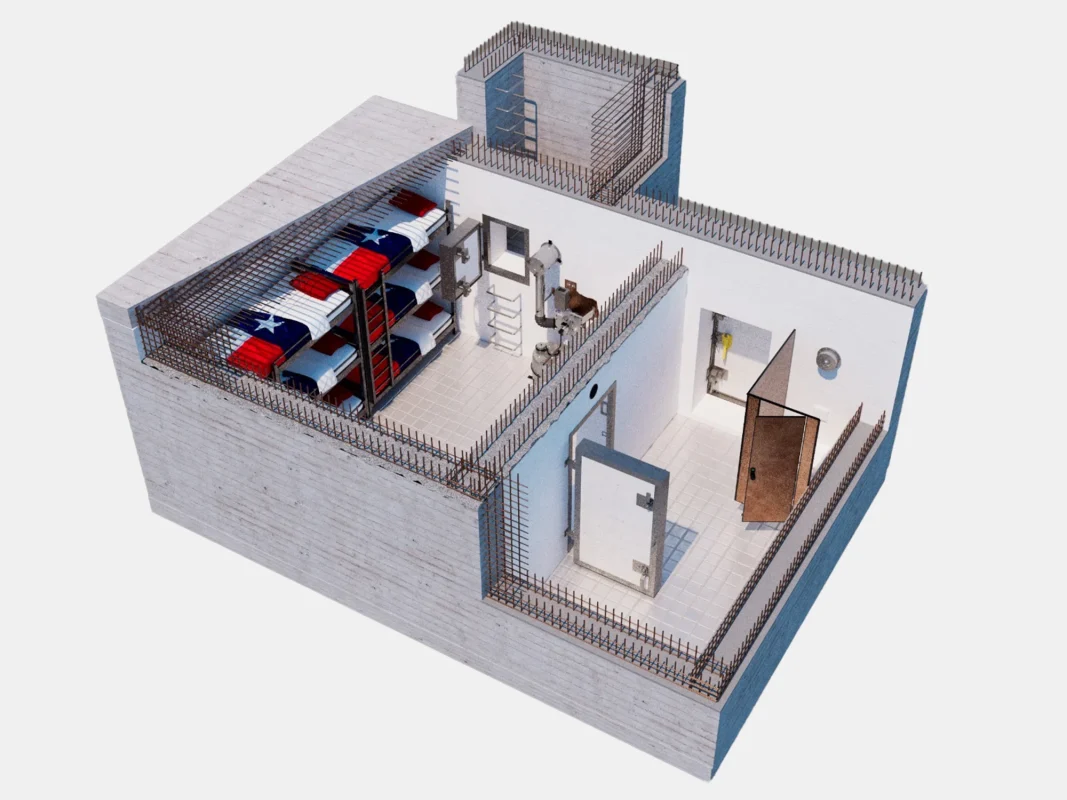 A multifunctional sanctuary blending the defensive prowess of a high-yield blast facility, extreme weather haven, and subterranean cold-storage asset.
