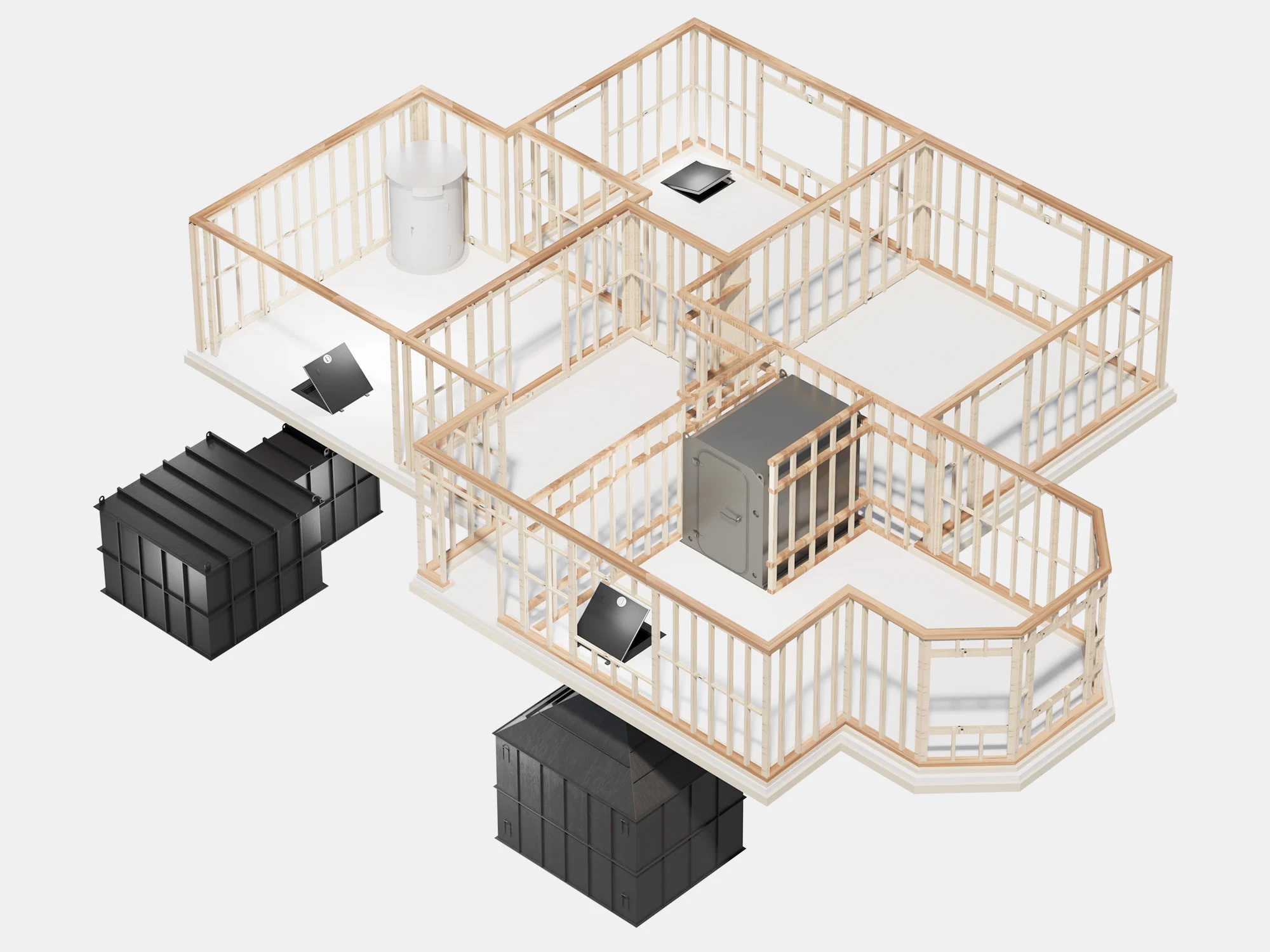 A modular layout built upon strict geometric lines, allowing for expansive, scalable subterranean living.