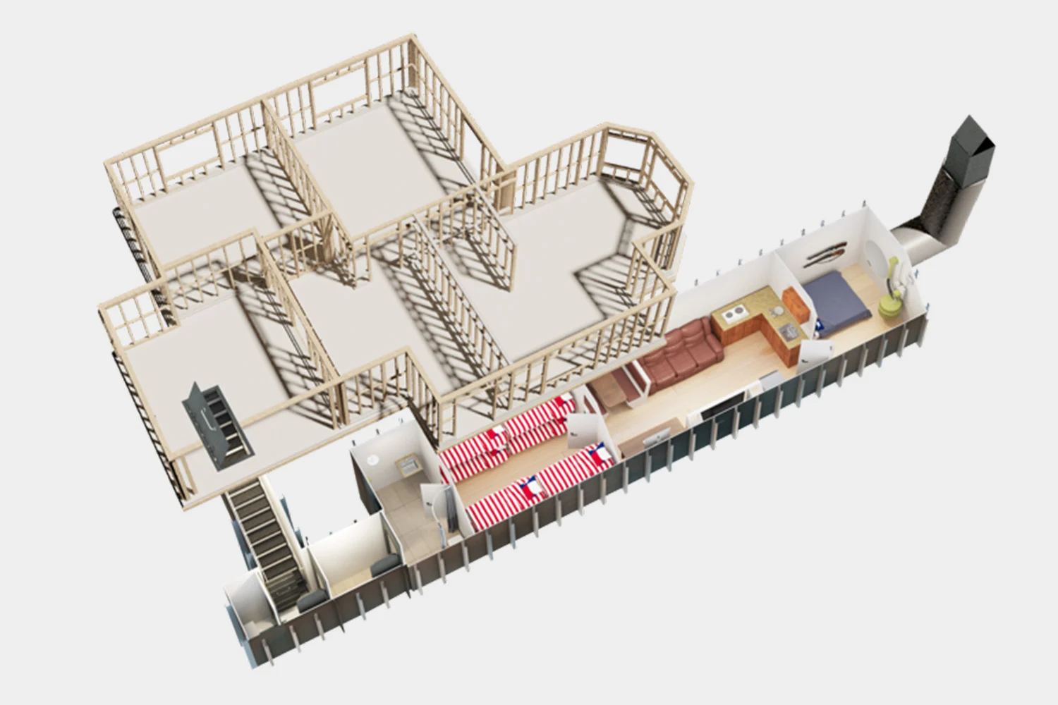 Ingenious concealed cavities beneath the primary living surface allow for massive logistical stockpiling, maintaining the elegance of your space while housing profound reserves.