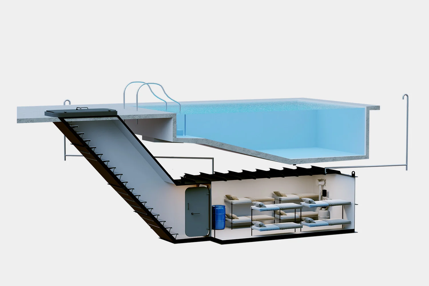 A highly fortified micro-installation featuring an impenetrable hatch, conceived to safeguard priceless assets.