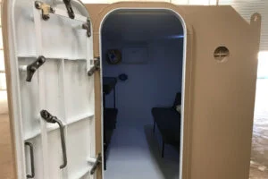 An air-tight, mobility-accessible panic room and tempest shelter. Engineered for uncompromising safety and rapid ingress for all family members.