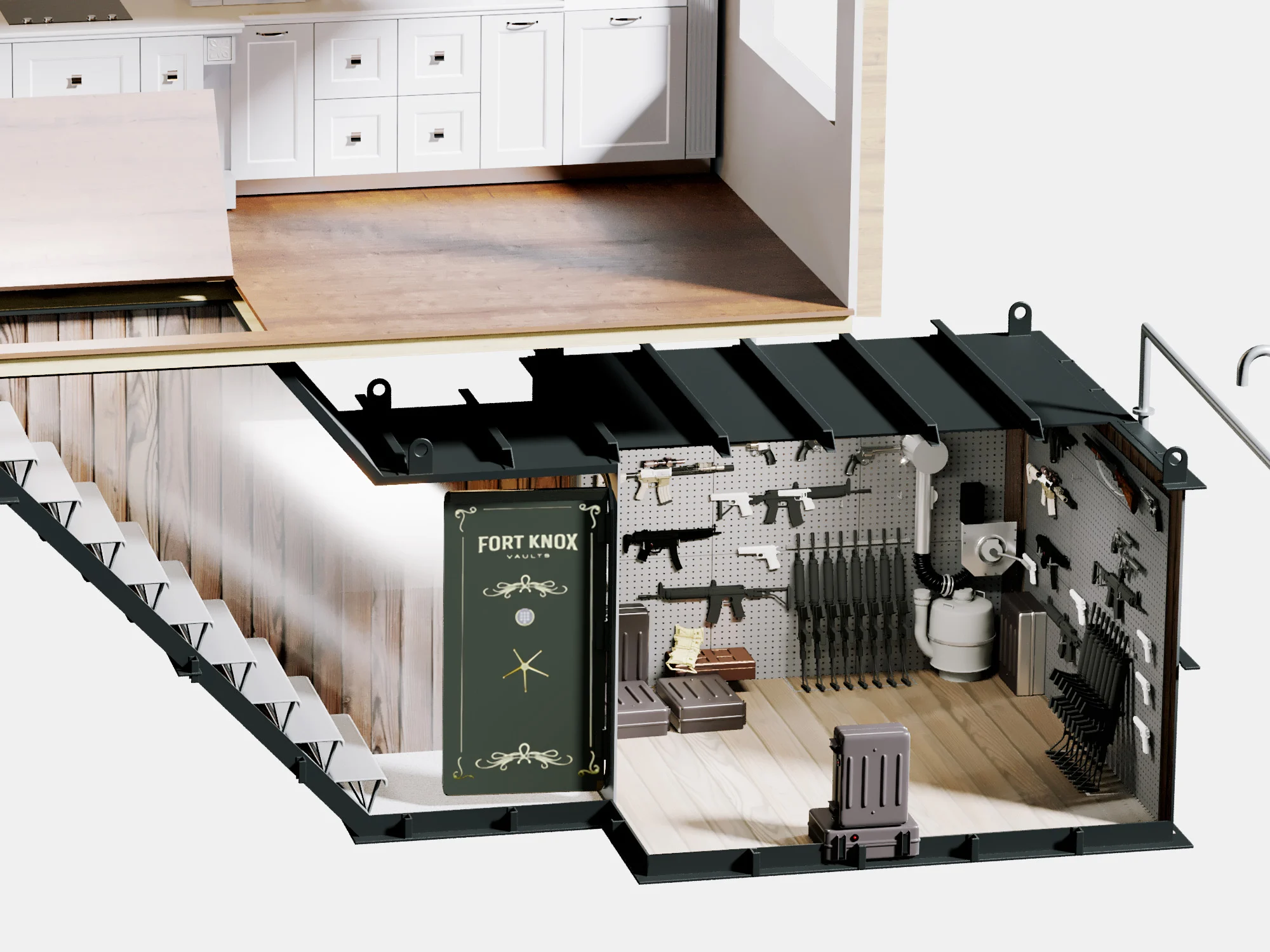 The Sanctuary Vault is engineered for installation beneath critical residential zones—kitchens, garages, or living quarters.