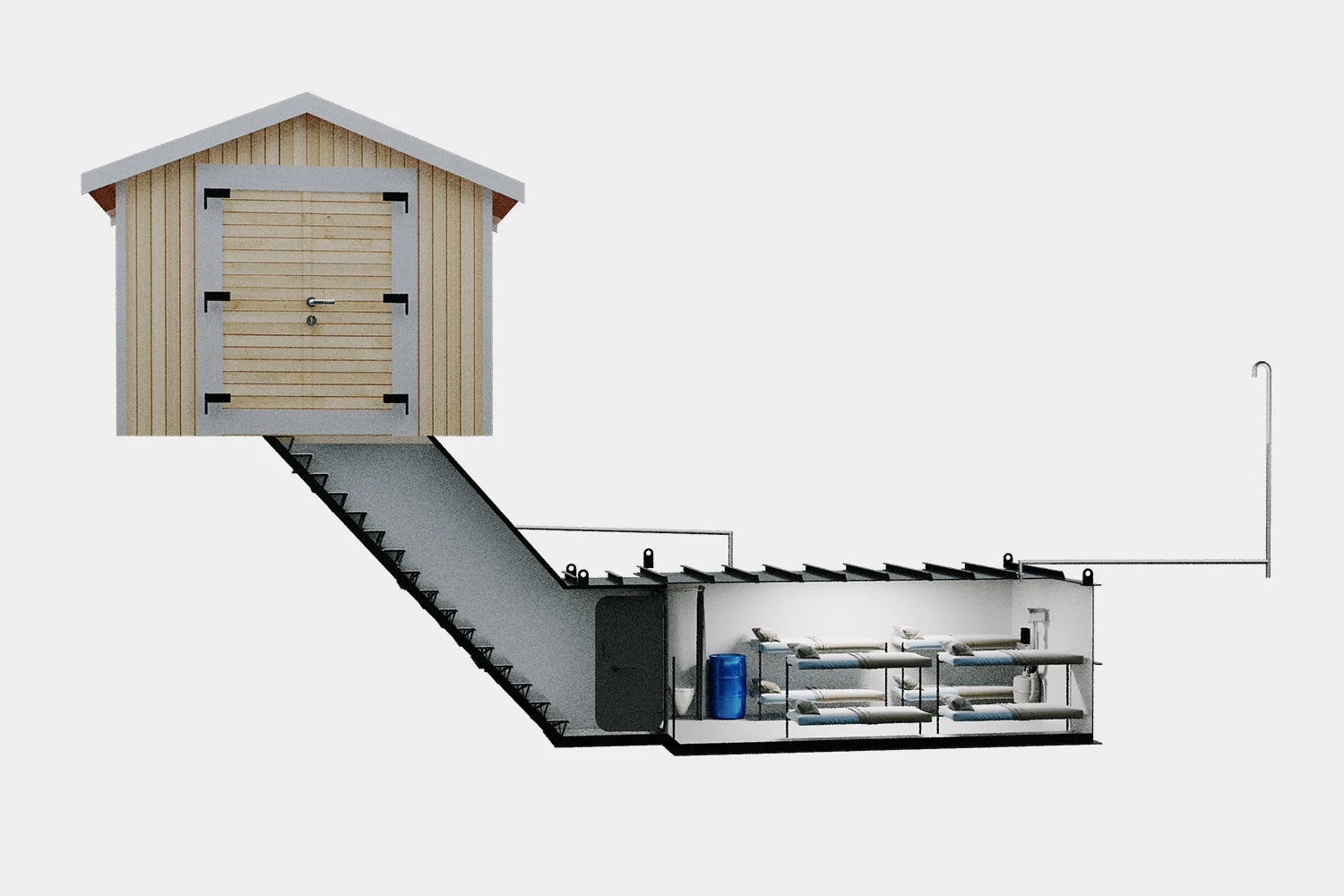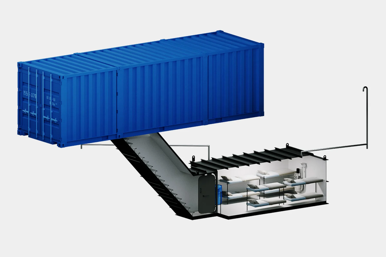 Features a critical 90-degree L-shaped entrance geometry to deflect gamma radiation and kinetic blast waves.