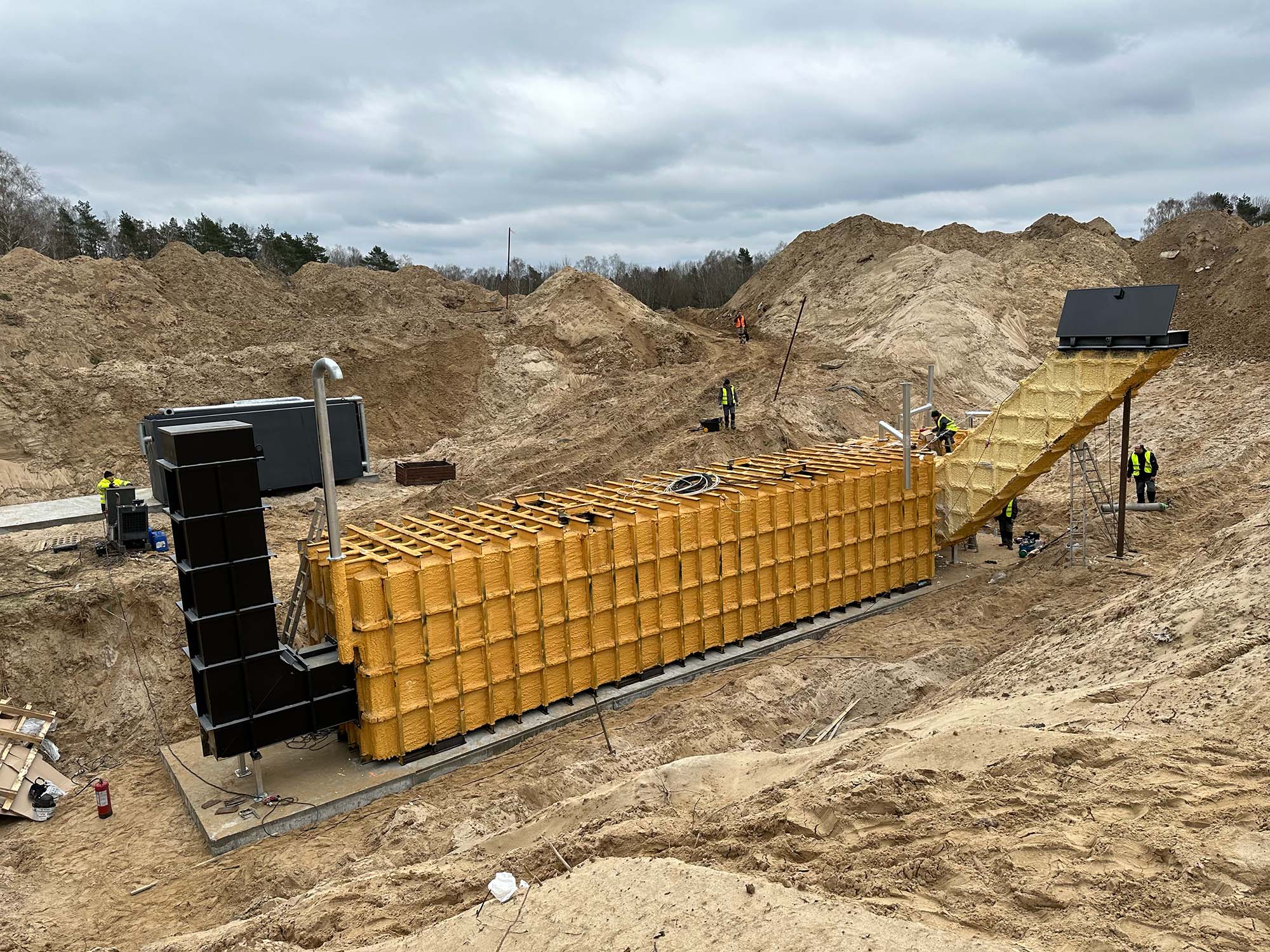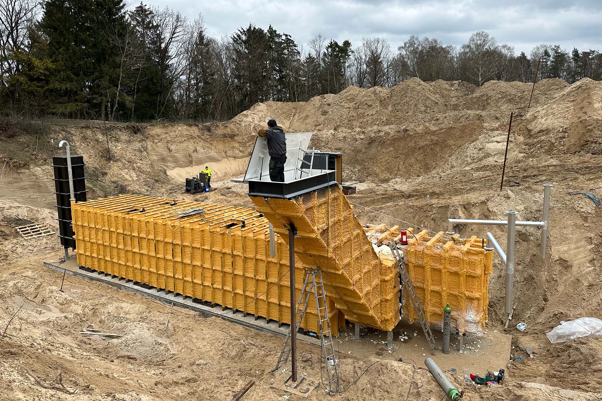The monolithic steel chassis is delivered as a singular unit and crane-positioned into the excavation. Following placement, vital infrastructure—including ventilation ducts, hydration lines, electrical grids, communications arrays, and waste management—is integrated. The structure is then encased in stone backfill and capped with a 28-inch reinforced concrete shield for maximum radiation attenuation.